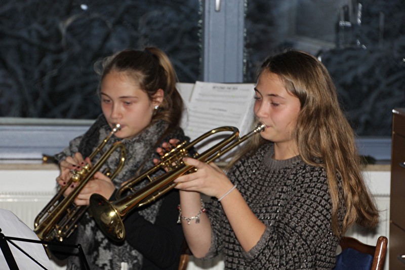 Zu Beginn der Weihnachts- und Wintersaison beim Musikverein fand am 03. Dezember der Adventsnachmittag der Musikerjugend statt. Das Programm wurde wieder von der Jugendleitung und den in Ausbildung befindlichen Jugendlichen gestaltet. Die Jüngsten, Nia Röser und Marlon Sinn am Saxophon eröffneten passend zur schneebedeckten Winterlandschaft mit „Schneeflöckchen, Weißröckchen“ den Nachmittag. Emily und Pauline Leidig spielten neben „Herbei oh ihr Gläubigen“ auch noch ein internationales Weihnachtslied. Von Aline & Lea Messer an den Trompeten hörten die Gäste „Es ist ein Ros entsprungen“, modernes Liedgut gab es dann von Johanna Leidig mit Leona Lewis‘ „Run“ auf der Querflöte. Zwischen den Musikstücken konnten sich die Jugendlichen über Rätselrunden ein Wichtelgeschenk erspielen. Auch weihnachtliche Geschichten und Gedichte durften an diesem Nachmittag natürlich nicht fehlen. Mit „We wish you a merry christmas“ gab es noch einmal die beiden Saxophone zu hören und am Ende des Programmes spielte ein Teil der Jugendgruppe noch „Last Christmas“, was den Nikolaus in unseren Vereinsraum lockte. Nachdem dieser dann seinen Geschenkesack geleert hatte, ließ man den Nachmittag bei weihnachtlichen Leckereien gemütlich ausklingen.